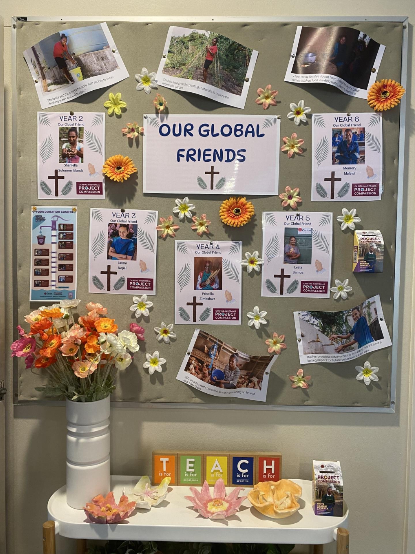 This Lent, to support Project Compassion, we have launched our Global Friends initiative. Each class has been introduced to a person from a community in need. They have been learning about their lives and exploring ways we can offer support through prayer and contributions.