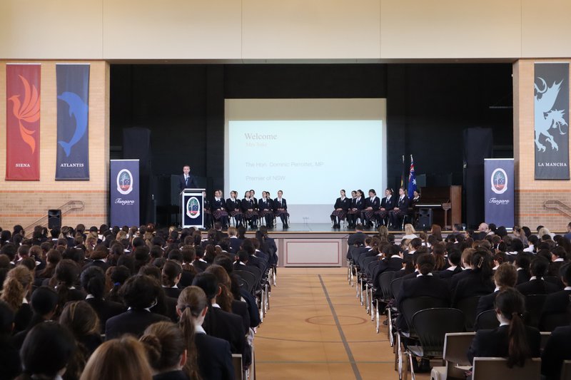 The ceremony commenced with the Premier greeting School Principal Mrs Sakr and our Student Leadership Team at the school's entrance, followed by our current Year 12 students and our Primary Leadership Team. The whole school gathered in the Yarra Hall for the special occasion, which included an address from Mrs Sakr, the School Anthem performed by the choir and a speech by the Honourable Dominic Perrottet on the importance of leadership, and how to improve one's leadership skills by learning from others.