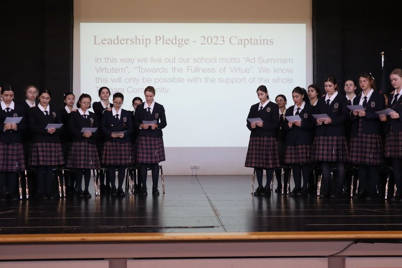 To end the ceremony, our 2022 Captain and Vice Captain (Jemima H and Ruby T), handed their badges over to our 2023 School Captain Gabrielle P, and our Vice Captain Natalie G. Students then performed the Leadership Pledge, a beautiful custom where the current leaders stand behind the corresponding future leader with a hand on their shoulder to signify the passing on of responsibility. Finally, the Honourable Dominic Perrottet presented the rest of the 2023 School Leadership Team with their badges.
