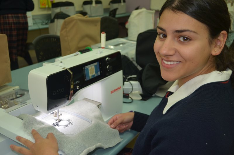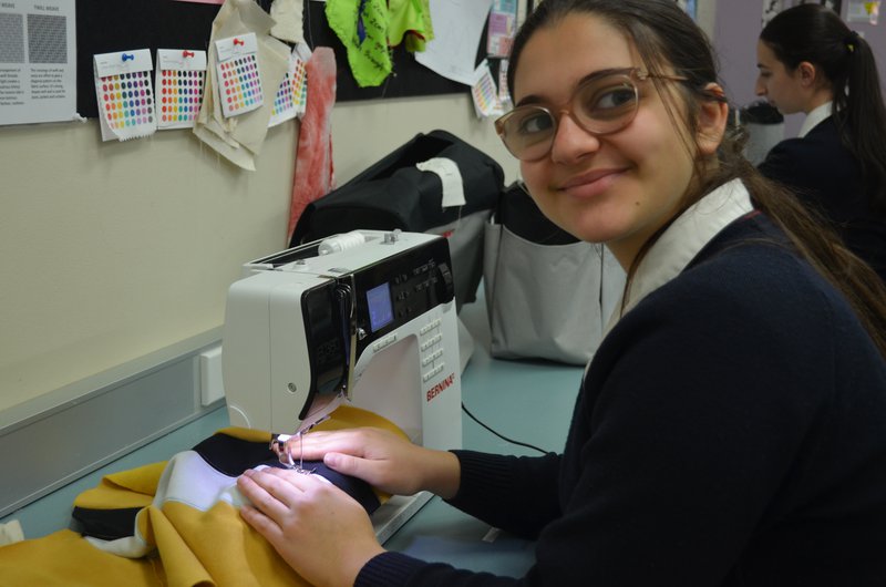 Year 9 is making 60s-inspired shift dresses with embroidery detail. The girls are learning about fabric types, fashion designers, sustainability and construction techniques.